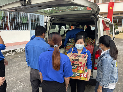 Đoàn thanh niên chuẩn bị các phần quà tặng cho người dân.