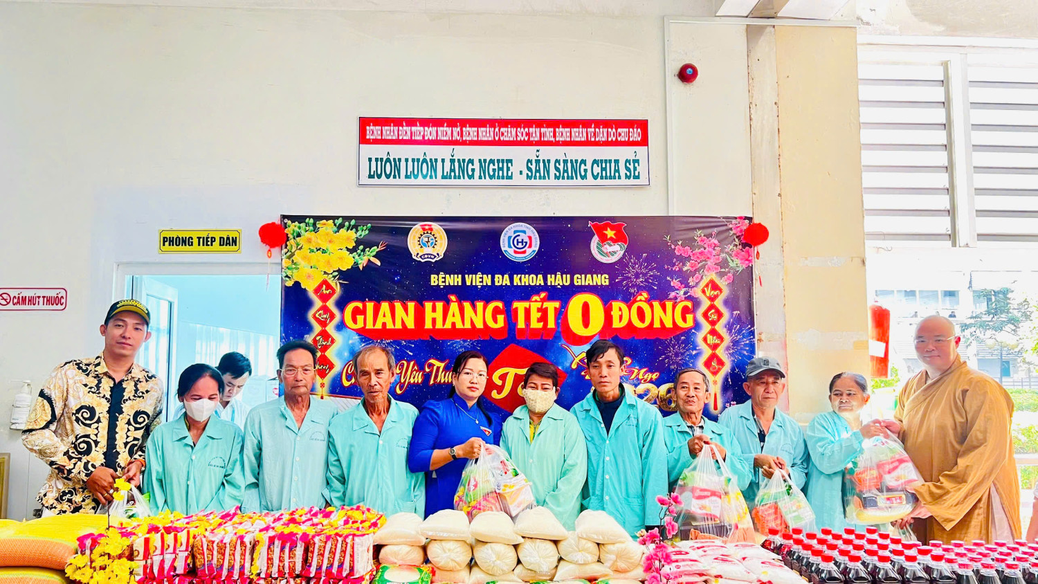 Dịp này, Bệnh viện Đa khoa Hậu Giang cũng đã vận động các mạnh thường quân tổ chức “Gian hàng Tết 0 đồng” trao tặng 103 phần quà Tết cho người bệnh có hoàn cảnh khó khăn đang điều trị tại bệnh viện, mỗi phần trị giá 450.000 đồng, với tổng giá trị gần 47 triệu đồng. Mỗi phần quà gồm các nhu yếu phẩm thiết yếu và vật dụng sinh hoạt hằng ngày như: gạo, đường, bột ngọt, nước mắm, nước tương, mì gói, cháo gói, bánh ngọt, cam, trà sữa, bún bì chả, quần áo đã qua sử dụng… Đây là lần đầu tiên Bệnh viện Đa khoa Hậu Giang tổ chức Chương trình “Gian hàng Tết 0 đồng”. Chương đã để lại nhiều hình ảnh đẹp, những nụ cười ấm áp và dấu ấn tốt đẹp trong lòng người bệnh, góp phần xây dựng hình ảnh bệnh viện ngày càng thân thiện, nhân văn và vì người bệnh.